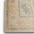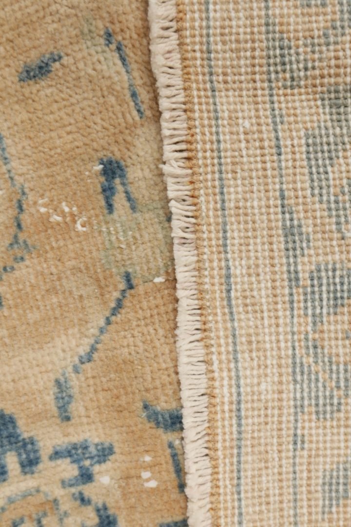 Elk van deze tapijten is met zorg handgemaakt en brengt de verfijnde texturen en kleuren uit het verleden naar het heden. Gemaakt van natuurlijke materialen zoals wol en katoen, wordt elk tapijt tot leven gebracht door de zorgvuldige verwerking van elke draad. Het reinigen, scheren, het inkorten van de vezels en het vervagen van de natuurlijke kleuren zorgen ervoor dat elk tapijt zachter wordt en een pastelachtige tint krijgt.