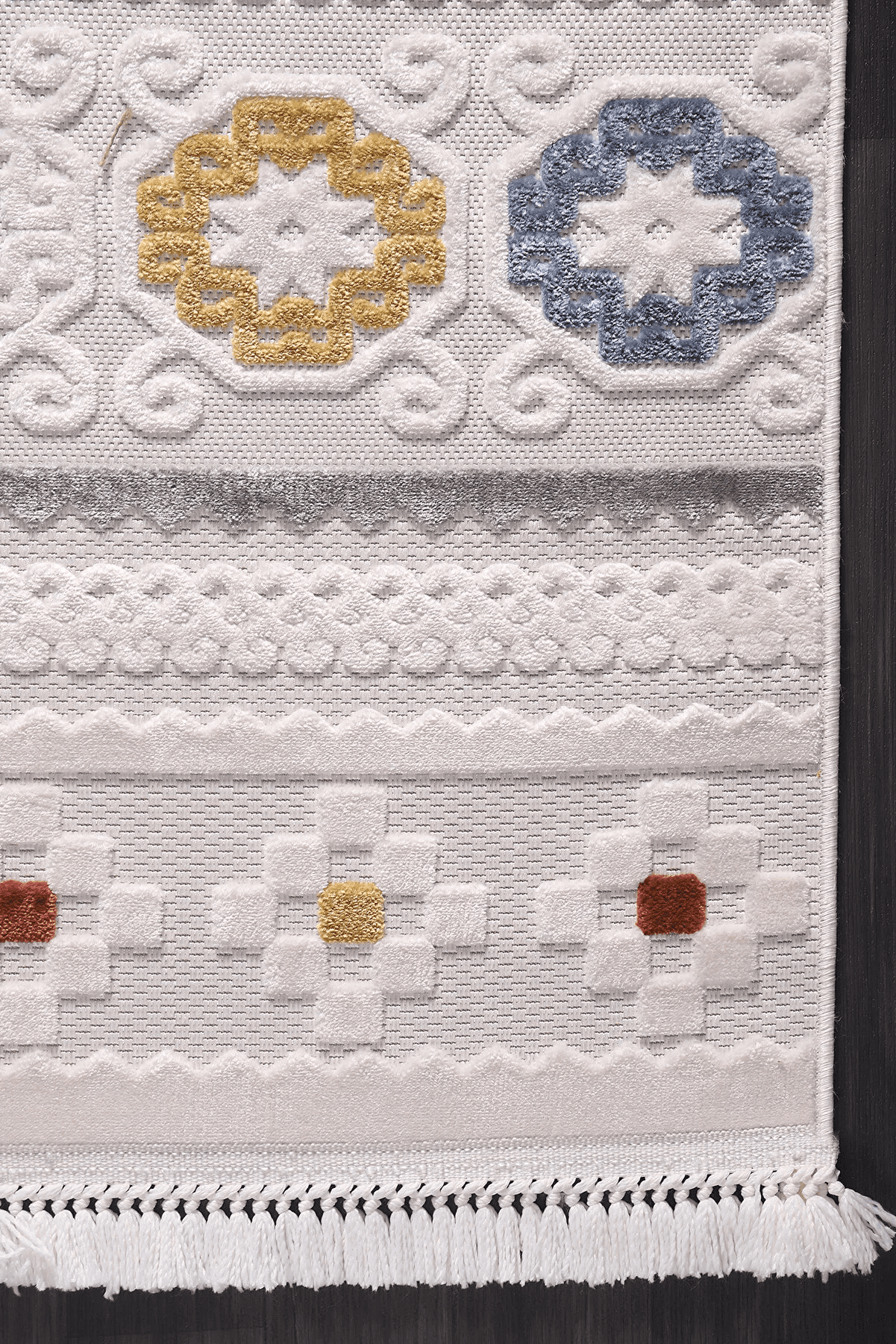 Dit tapijt biedt een speciale touch die de Scandinavische eenvoud en moderne stijl in huis brengt. Met een rustige harmonie van grijze en beige tinten combineert dit tapijt de duurzaamheid van polyester met de natuurlijke textuur van sisal en jute. Dankzij de totale dikte van 7 mm en een poolhoogte van 5 mm biedt het zowel een zacht gevoel als comfort onder de voeten.