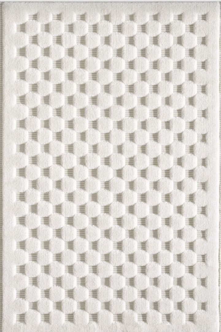 Met zijn zachte textuur, hoge pool en eenvoudige elegantie brengt dit Scandinavisch vloerkleed een rustgevende sfeer in je interieur. De overheersende beige en witte tinten geven de ruimte een frisse uitstraling, terwijl het speciale 3D-patroon diepte en karakter toevoegt.
