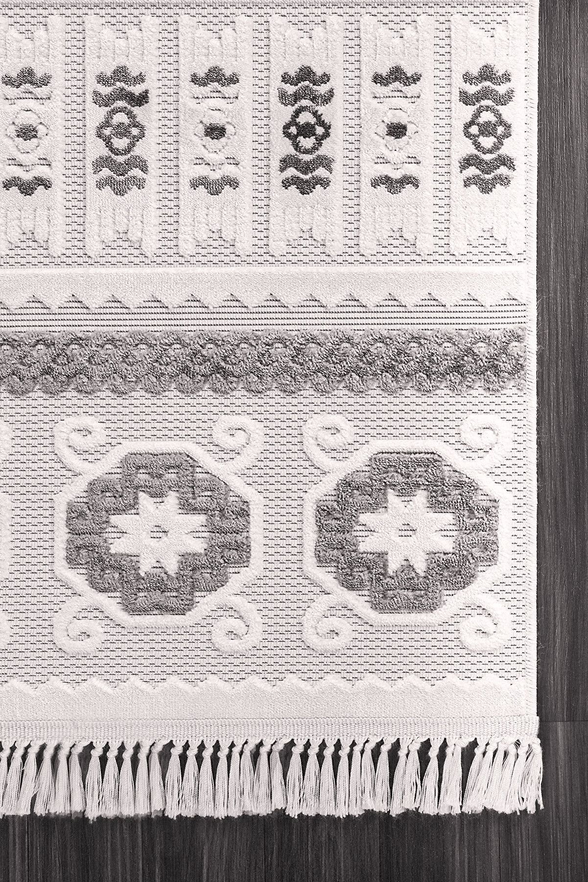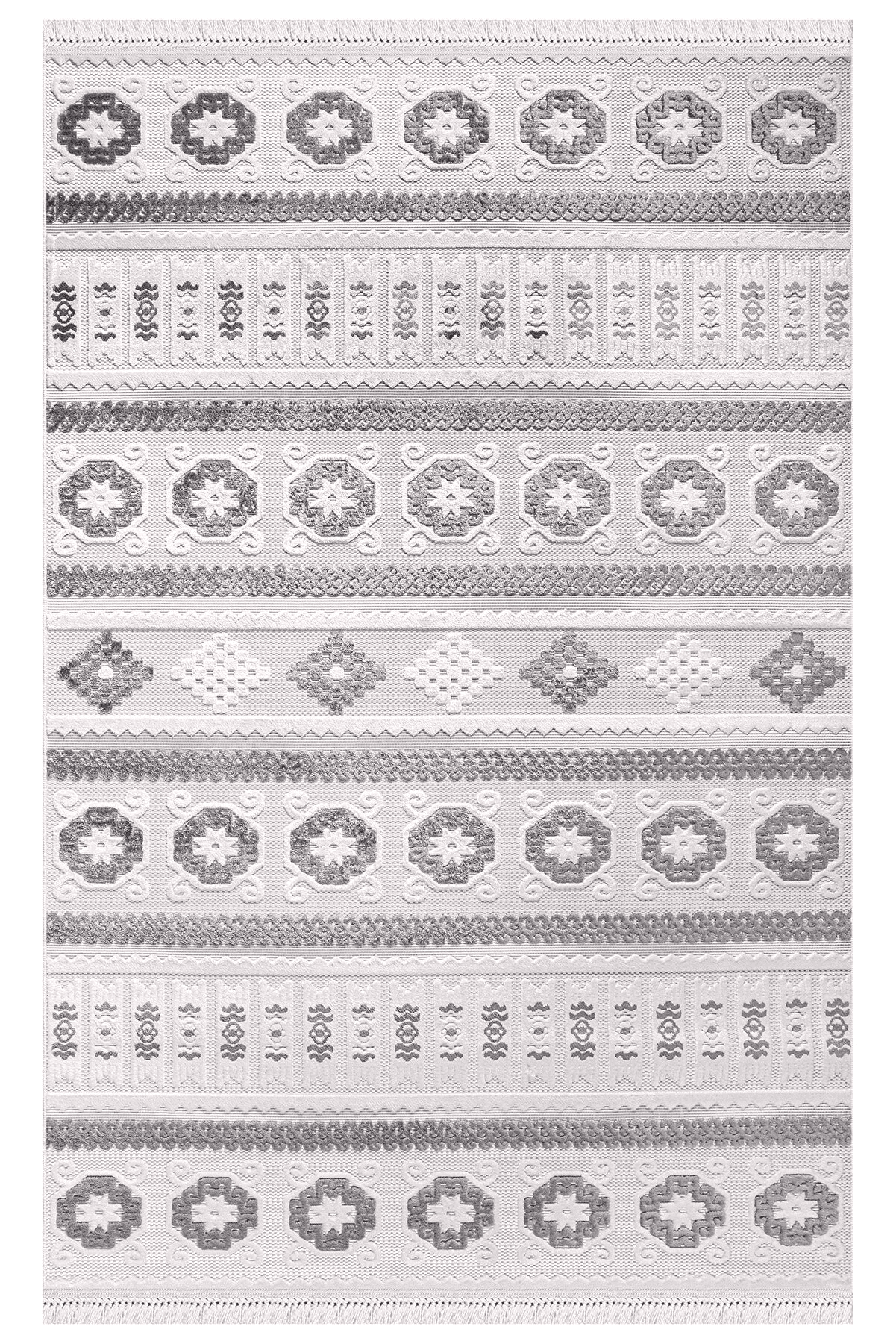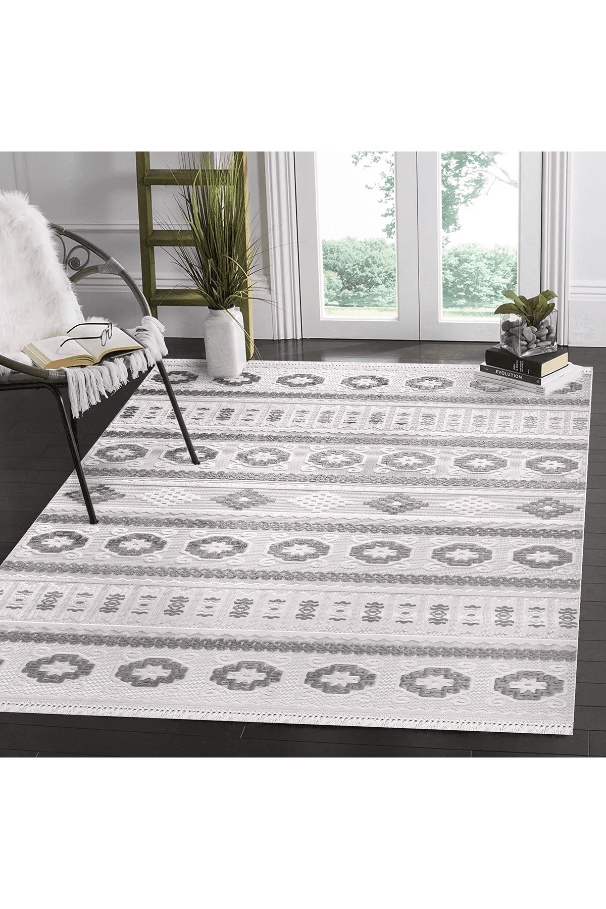 Dit tapijt biedt een speciale touch die de Scandinavische eenvoud en moderne stijl in huis brengt. Met een rustige harmonie van grijze en beige tinten combineert dit tapijt de duurzaamheid van polyester met de natuurlijke textuur van sisal en jute. Dankzij de totale dikte van 7 mm en een poolhoogte van 5 mm biedt het zowel een zacht gevoel als comfort onder de voeten.
